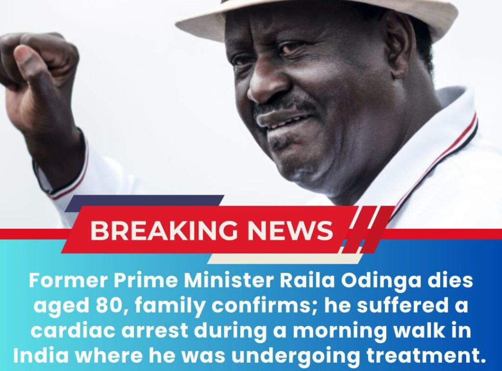t’s a moment of profound sadness for Kenya and for Africa. The veteran opposition leader and former Prime Minister, Raila Amolo Odinga, has died at the age of 80 in India, suffering a cardiac arrest while undergoing treatment.